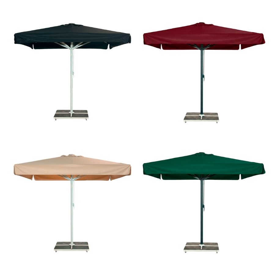 Jätteparasoll 5x5 meter med volangkant är ett stilfullt och funktionellt val för restauranger, hotell, caféer och andra utomhusmiljöer där generös skugga och ett välvårdat uttryck är avgörande.