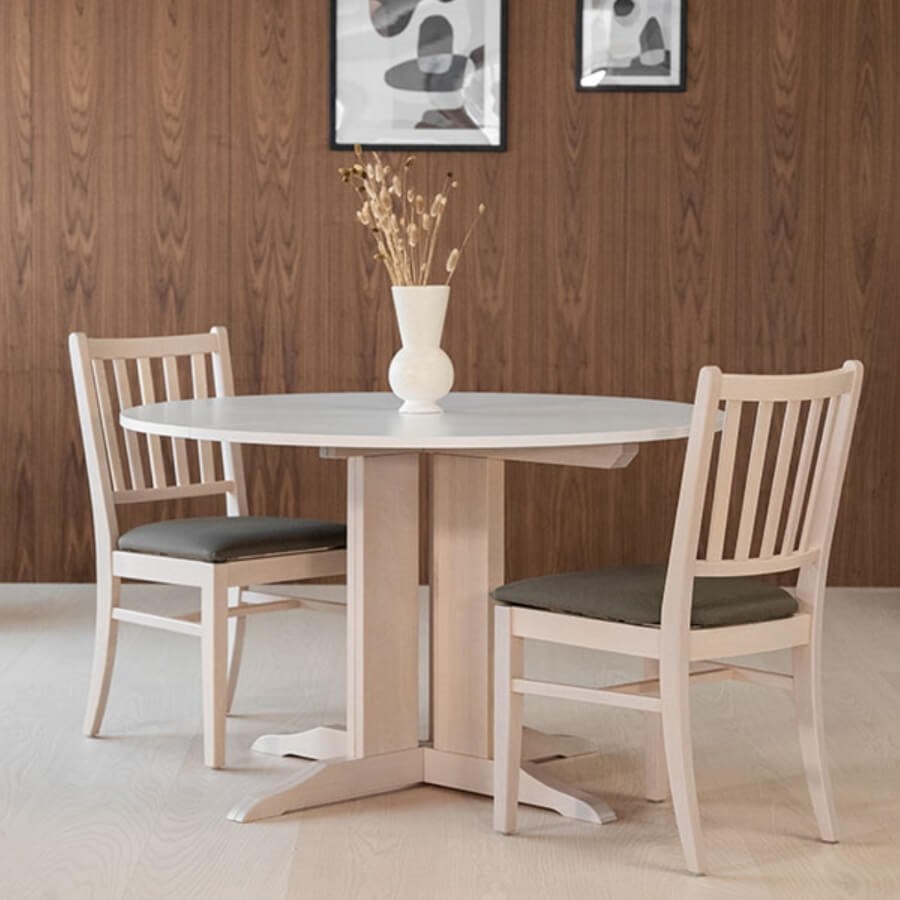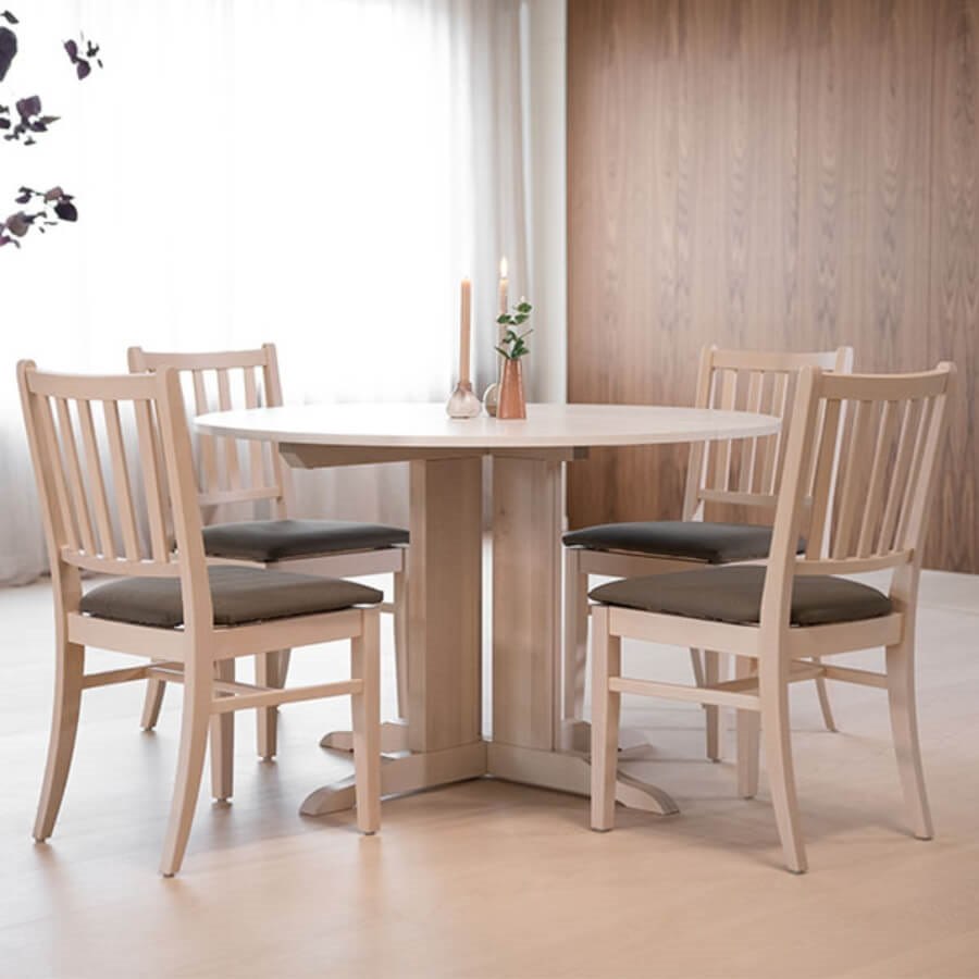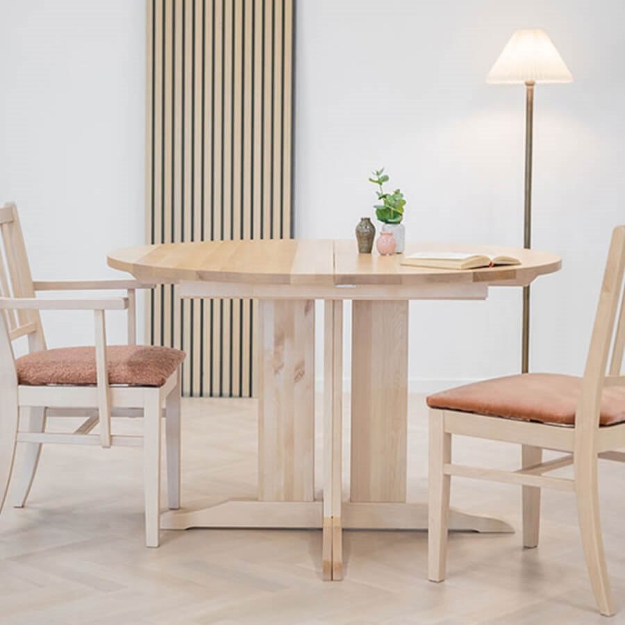 • Ester med iläggsskiva: dia. 120 cm + 50 cm bred iläggsskiva, höjd 75 cm