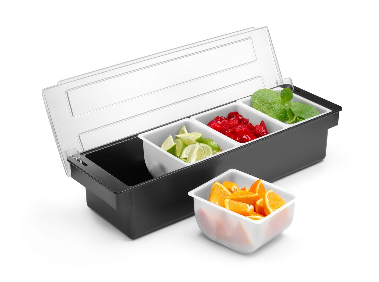 Kryddhållare med fyra behållare är det perfekta tillbehöret för professionella bartendrar och restaurangägare som vill optimera sin cocktailberedning. Denna praktiska behållare gör alla ingredienser lättillgängliga, vilket sparar tid och förbättrar effektiviteten i baren. Tillverkad av hållbara material som ABS och HIPS, garanterar denna kryddhållare långvarig kvalitet och pålitlighet. Med en smart design som rymmer fyra olika tillsatser, kan du enkelt anpassa dina drinkar för att möta kundernas önskemål. Investera i denna kryddhållare för att säkerställa en smidig och professionell arbetsflöde i din verksamhet, och ge dina kunder den bästa cocktailupplevelsen.