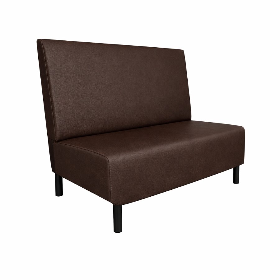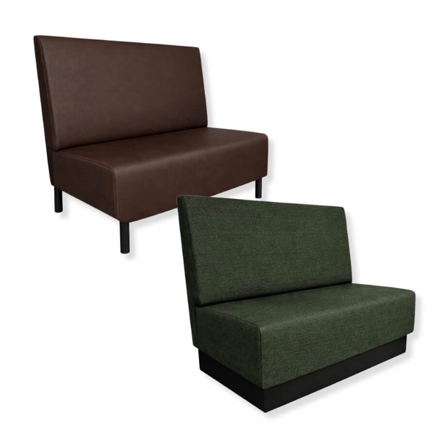 Restaurangsoffa Stockholm New med slät rygg är gjord för offentlig miljö som ställer extra höga krav på kvalitén, och fungerar därför utmärkt som restaurangsoffa, cafesoffa och hotellsoffa. Soffan har en slät rygg och sits som kläs med valfritt tyg eller konstläder från våra utvalda sofftyger. Klädseln är extra tålig och har hög motståndskraft mot dagligt slitage och intensiv användning.