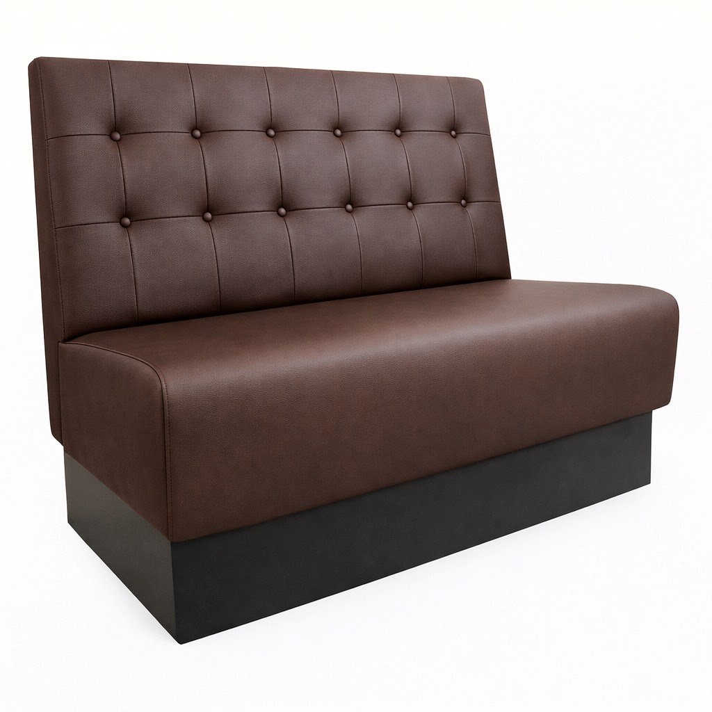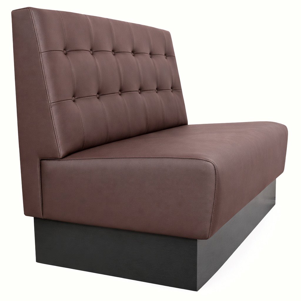 Specialtillverkad restaurangsoffa med knappar i kvadrat.Total höjd 95 cmTotalt djup 68 cmSittdjup 50 cmSitthöjd 47 cmSockel i svart, valnöt eller wengeDolda beslag mellan soffmodulerKonstläder eller tyg.